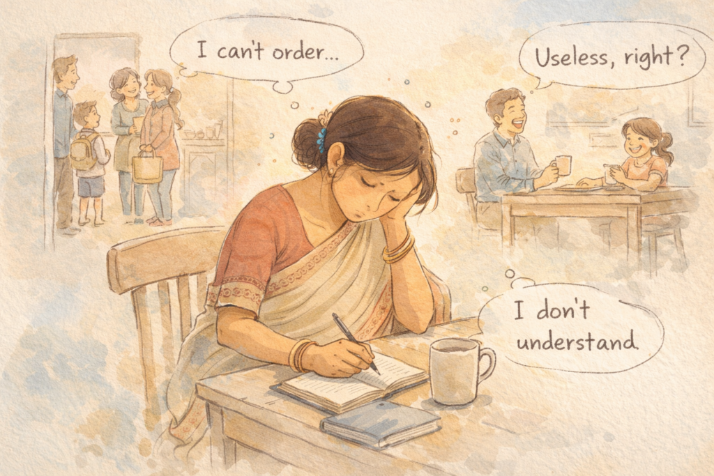 シャシは、英語ができないことで何度も傷つきます。