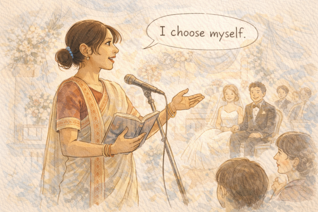 クライマックスの結婚式スピーチ。